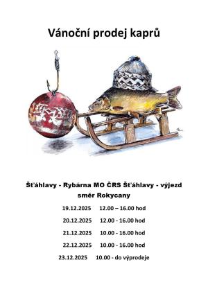Od pátku 31. 10. 2025 zahajují šťáhlavští rybáři prodej ryb, který bude probíhat každý pátek od 15:00 do 17:00 hodin v rybárně u mostu až do Vánoc.