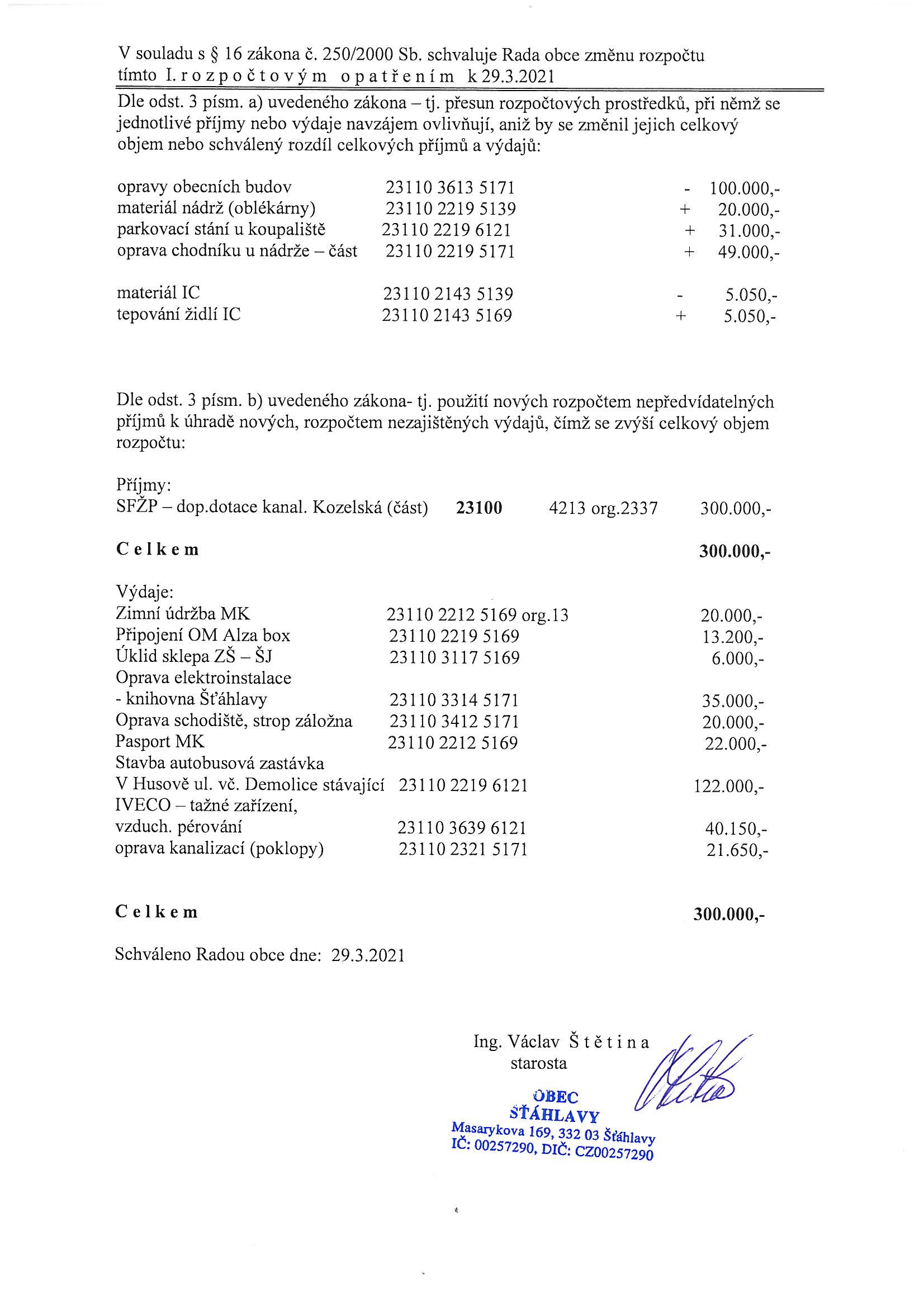 Rozpočty - Schválené rozpočtové opatření Staženo: 665x | Datum vložení: 15.04.2019