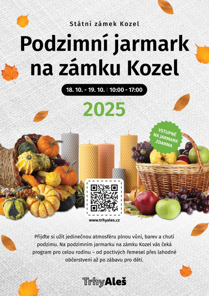 Přijďte si užít jedinečnou atmosféru plnou vůní, barev a chutí podzimu. Na podzimním jarmarku na zámku Kozel vás čeká program pro celou rodinu – od poctivých řemesel přes lahodné občerstvení až po zábavu pro děti.